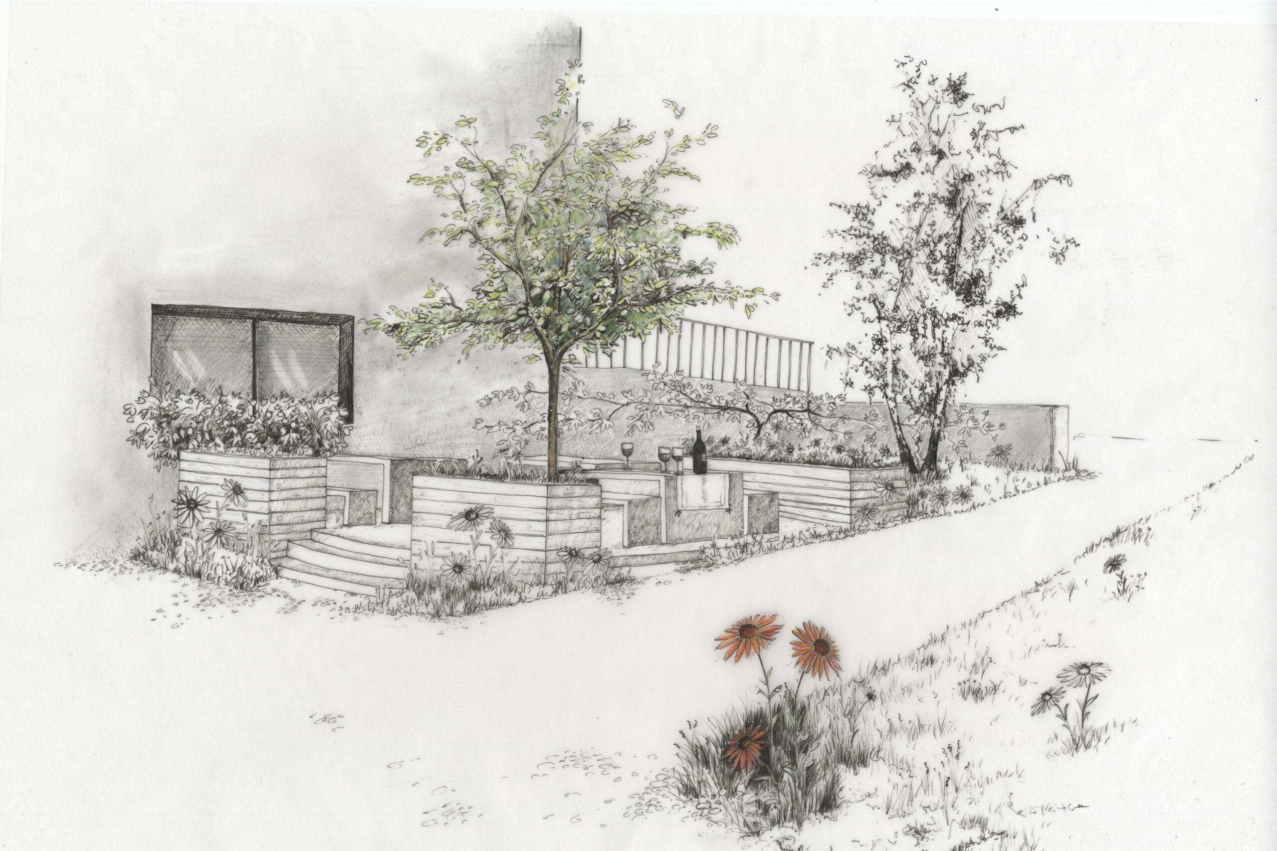 Sie haben Ideen im Kopf, aber kein klares Bild? Eine handgezeichnete Gartenskizze macht Stimmung, Struktur und Nutzung sichtbar – schnell, intuitiv und ohne Sie schon auf jedes Detail festzulegen.